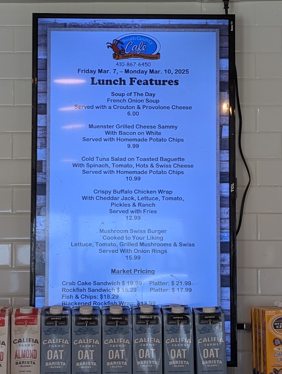 Cold Mediterranean Sub With Genoa Salami, Peppered Ham, Lettuce Tomato, Red Onion, Kalamata Olives, Provolone Cheese, & Feta Vinaigrette Served with Homemade Potato Chips 12.99